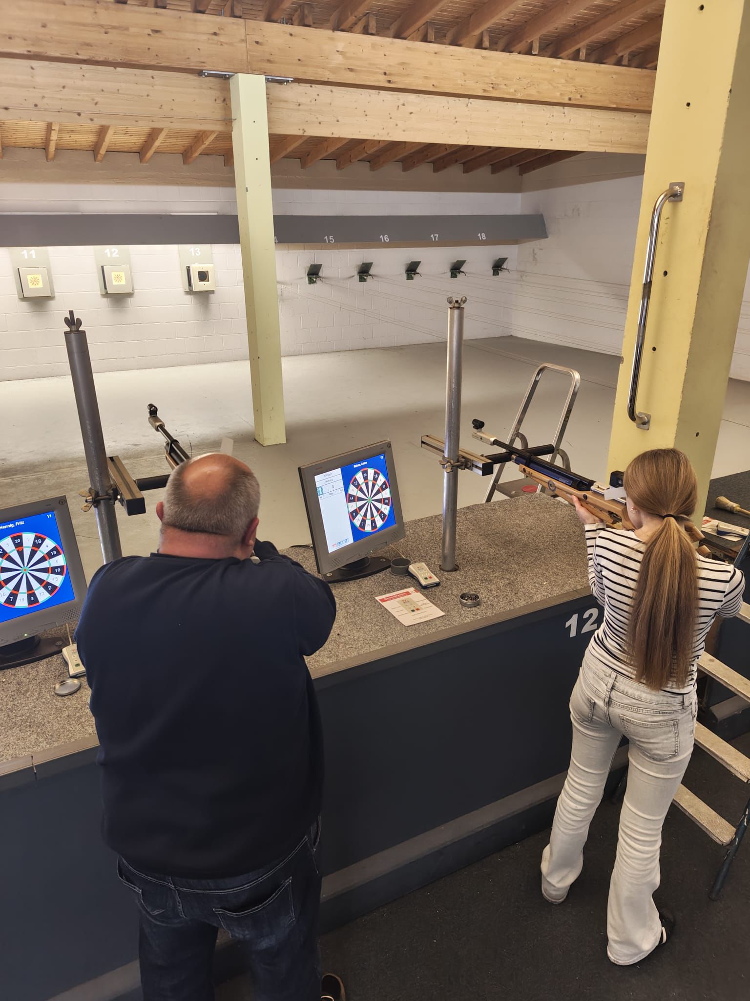 Die Stimmung war durchweg gelassen und fröhlich. Insgesamt 31 Starter traten an und schossen auf 10 Meter im Dartscheiben-Modus, was für Abwechslung und Spaß sorgte. Ein besonderer Moment war die erste Hunderter-Serie im Jubiläumsjahr, die von Fritz Hennig erzielt wurde. Für diese Leistung erhielt er den Pokal „Erste Hunderterserie im Jubiläumsjahr“.